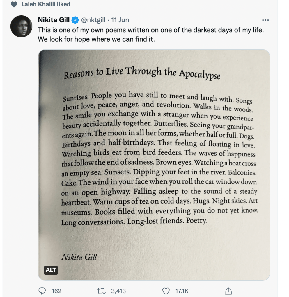 We start with a playlist – what song or piece of music would you add to a playlist that speaks to these times?